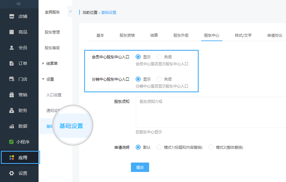 昆明網站建設》鴻翥商城 如何設置股東中心?昆明網站建設》會員中心和分銷中心股東中心入口應用——全民股東——基礎設置——股東中心,選擇股東中心在會員中心和分銷中心顯···2022-07-06