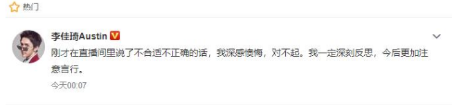事后李佳琦在微博上道歉,表示自在直播間說(shuō)了不合適不正確的話,以后會(huì)反思注意。