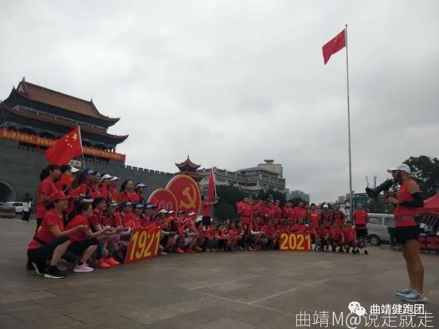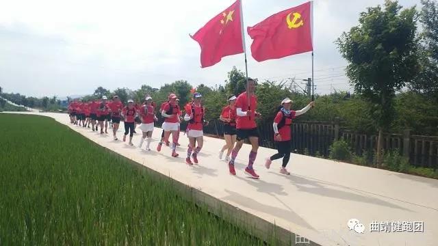 6月26日,來自曲靖、沾益、馬龍、師宗健跑團在曲跑友、陸良健跑隊在曲跑友們在紅色莊園進行了一次特別的愛黨、愛國主題教育活動,50名成員組成的健身跑隊伍,上身統一穿著跑團紅色短袖團服或者自備紅色T恤衫,高舉國旗、黨旗,迎著初升的太陽,從珠江源廣場(起點)南城門-石林酒店路口-鳳凰嘉城路口左轉-西城小學左轉-紅軍戰斗遺址-鐵三公園-響水街大橋頭右轉-睿智假日灣紅色莊園終點。